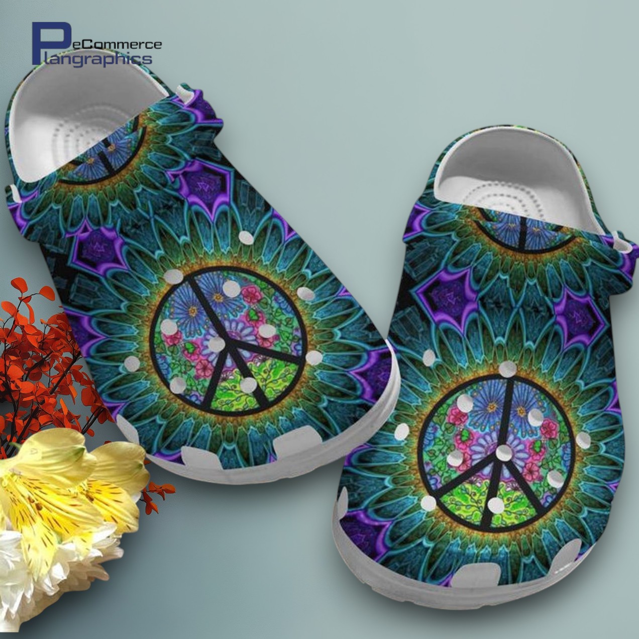Printed Hippie Peace Sign Crocs Clogs – Trendy Comfort Footwear