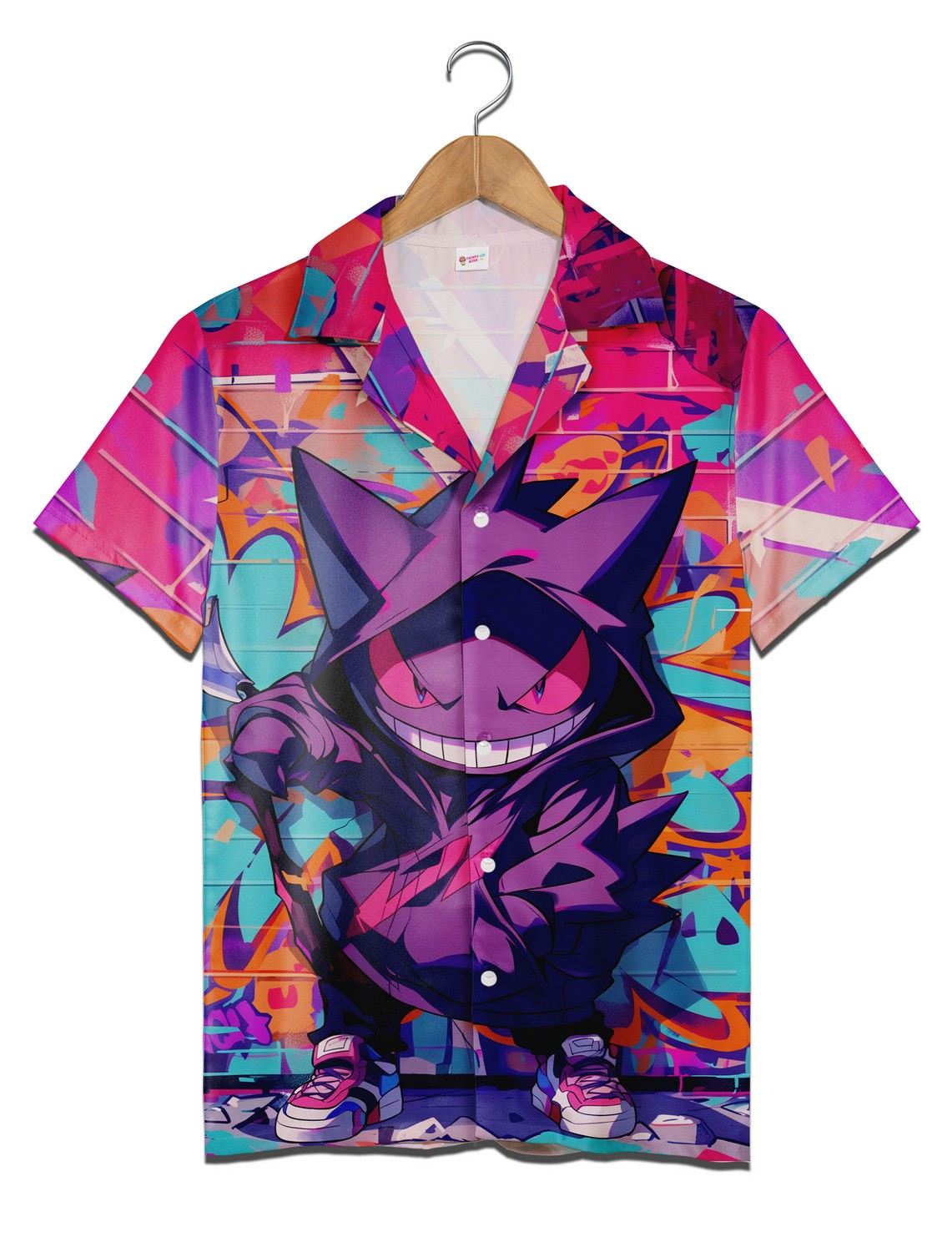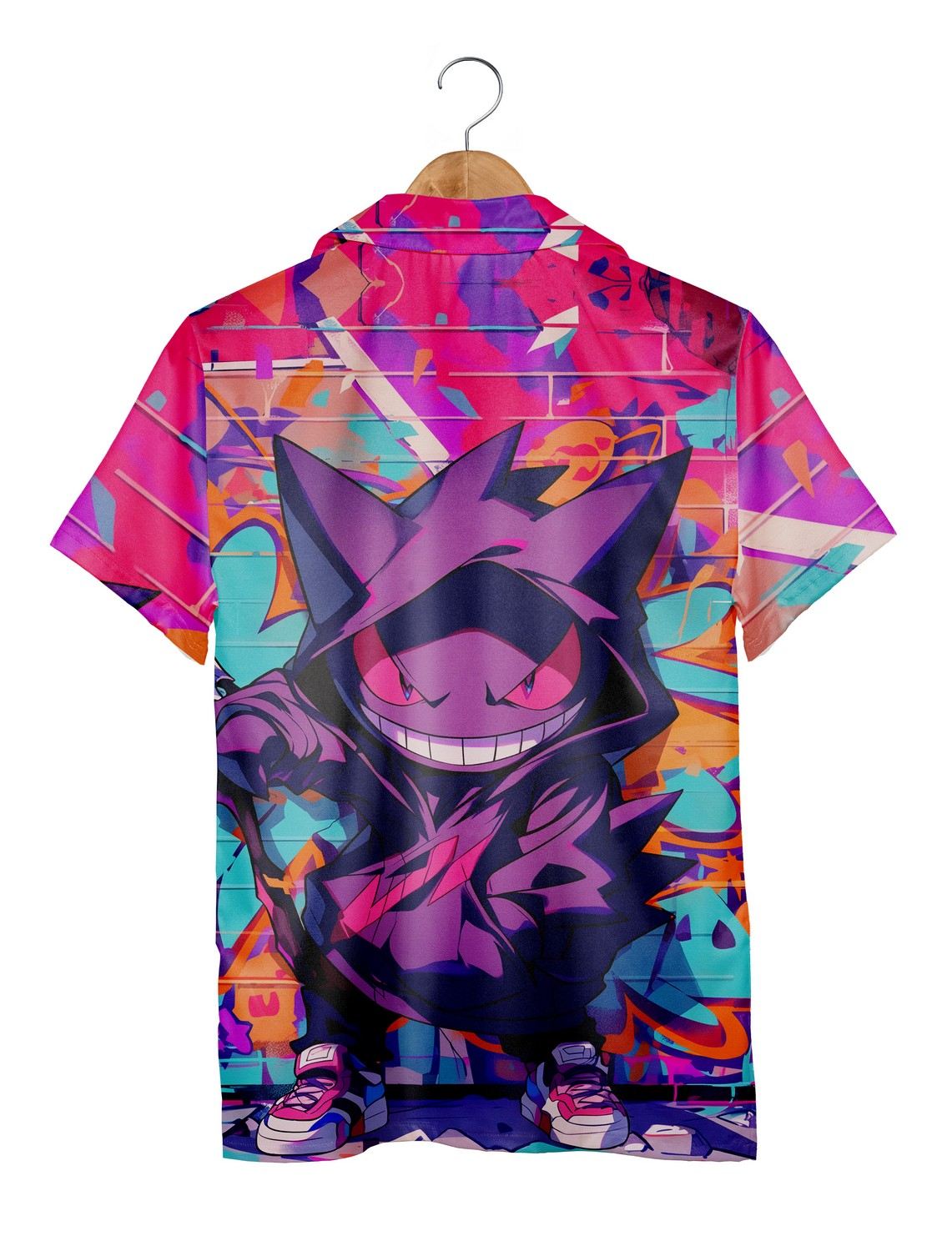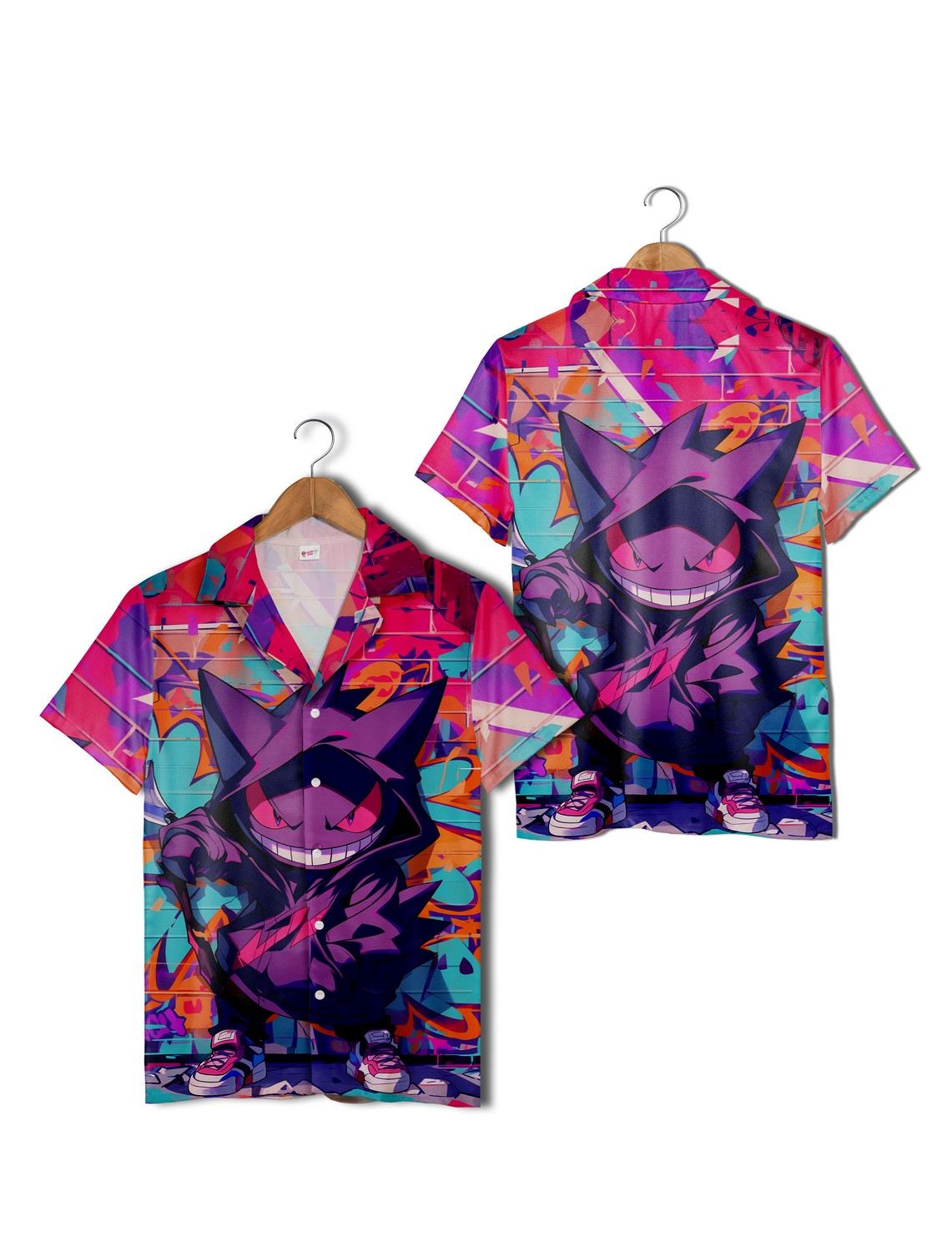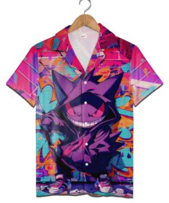 Dive into vibrant style with this eye-catching shirt featuring bold, purple-themed Pokemon art. The unique graphic aesthetic adds a tropical flair, perfect for vacations or casual outings. Ideal for fans and family teams looking to stand out with a fun and colorful outfit.