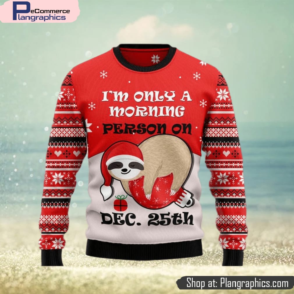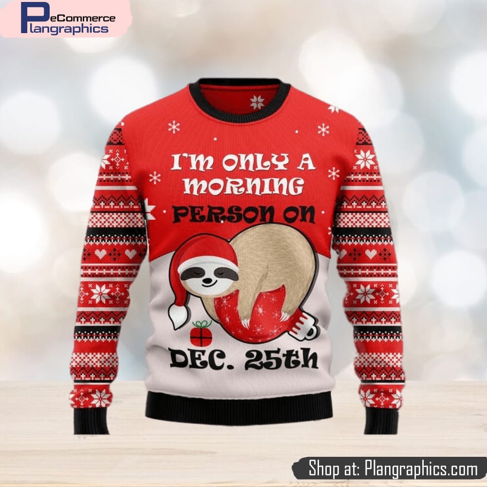 Sloth I’m Only Morning Person On Dec 25th Ugly Christmas Sweater