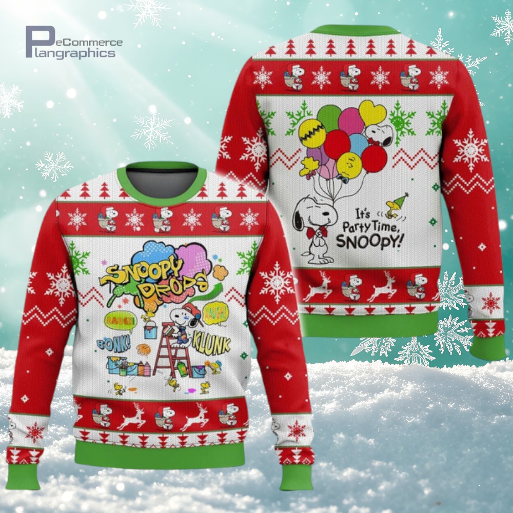 Snopy Drops Bonk It’s Party Time Ugly Christmas Sweater