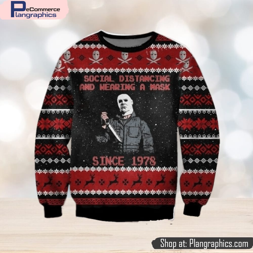 Social Distancing And Wearing A Mask Since 1978 Ugly Sweater Christmas Party