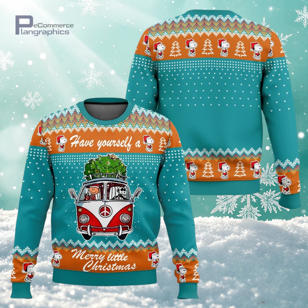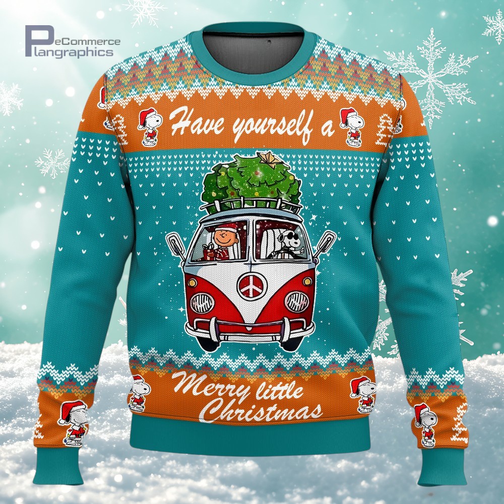 Soft Snoopy & Peanut On Campervan Merry Little Ugly Christmas Sweater