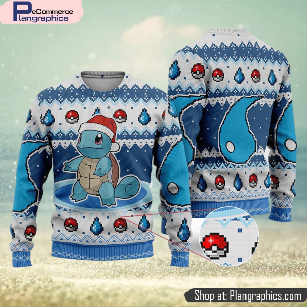 Squirtle Squirtle Anime Squirtle Xmas Pocket Monster Gift Ugly Christmas Sweater For Men And Women features