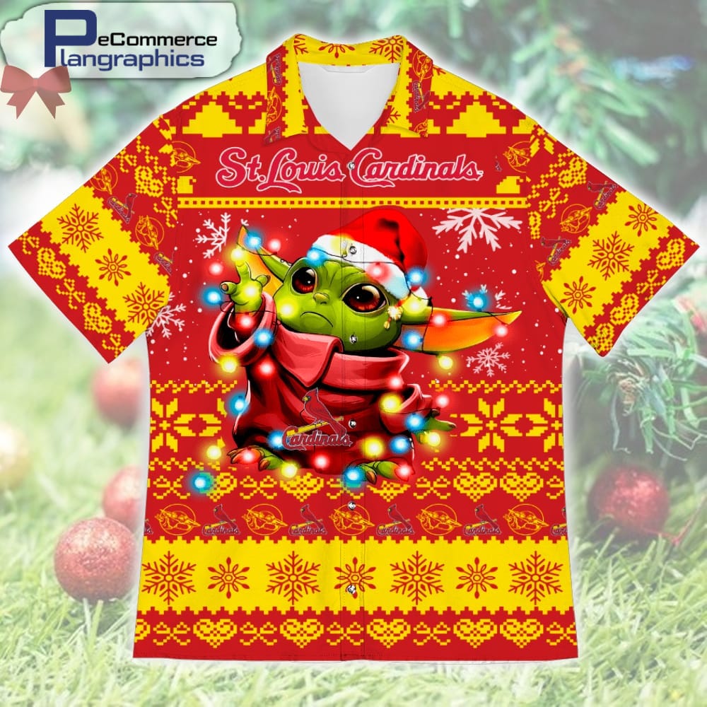 St. Louis Cardinals Baby Yoda Christmas Design Printed Casual Button Shirt