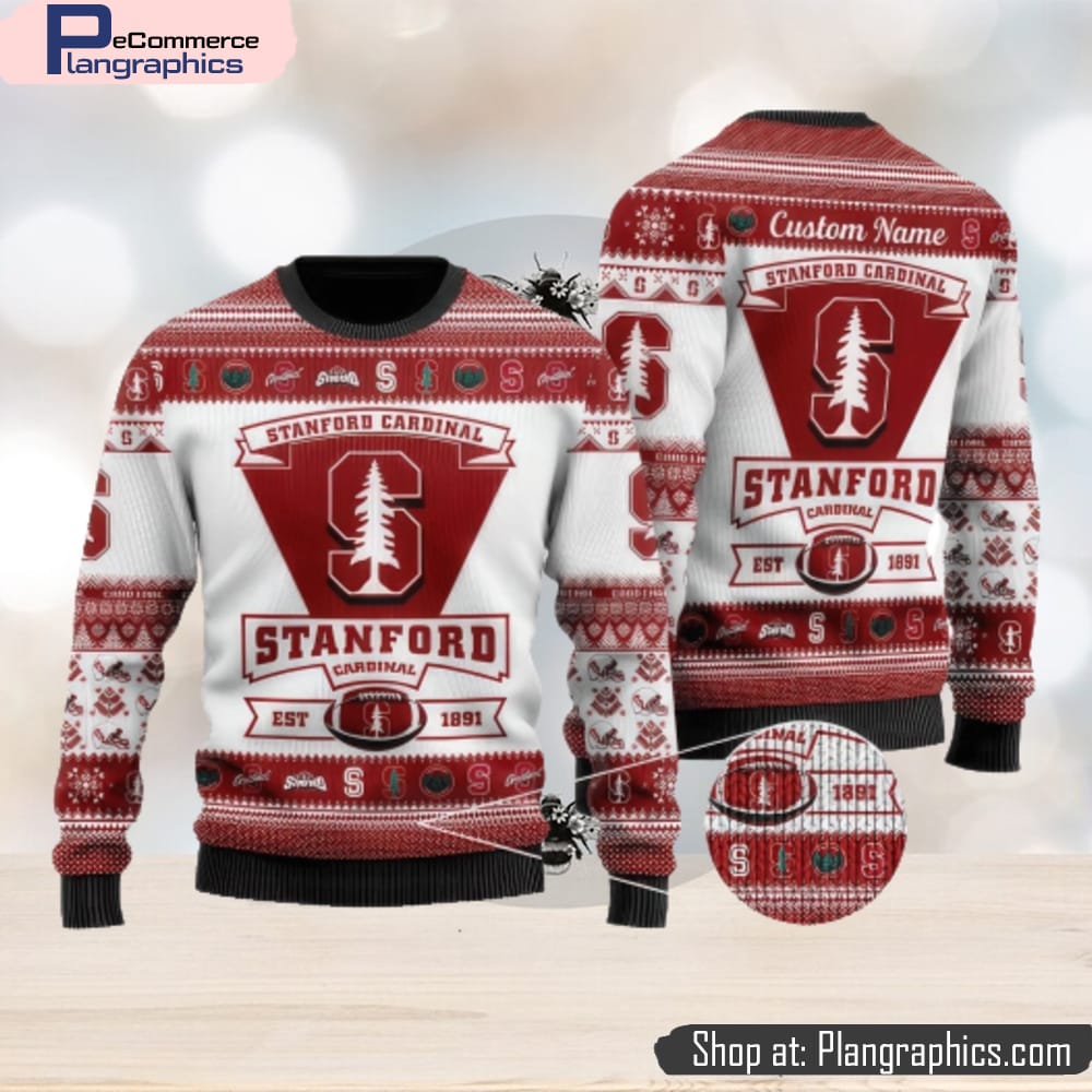 Stanford Cardinal Logo Custom Name For Football Fans Ugly Christmas Sweater Christmas Gift