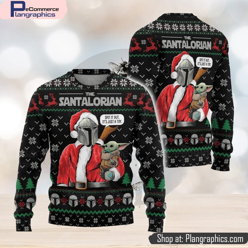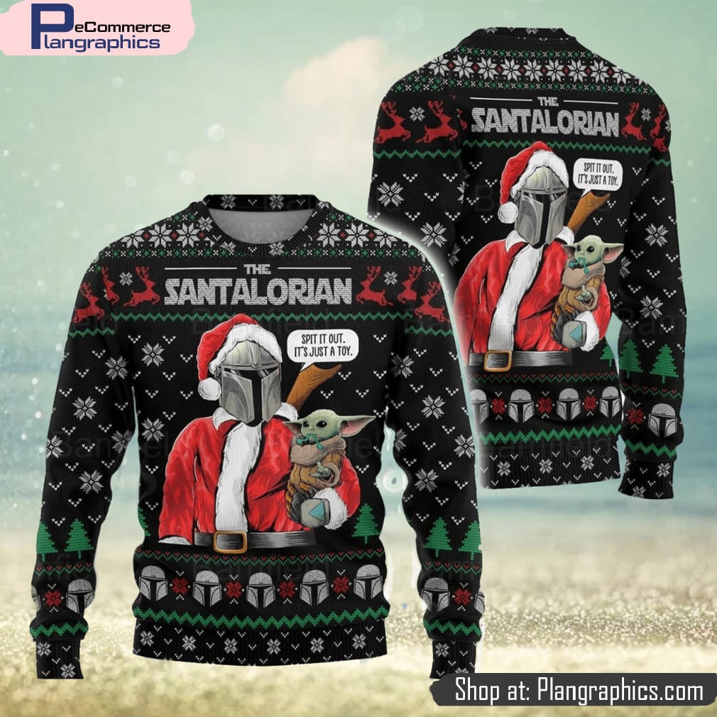 Get into the holiday spirit with the Star Wars Mandalorian Ugly Christmas Sweater. This festive sweater is perfect for both men and women, making it a great gift idea for any Star Wars fan. The sweater features iconic Mandalorian and Star Wars symbols arranged in an ugly Christmas sweater pattern. The combination of bright colors and fun designs will surely bring joy to your holiday celebrations. Made with high-quality materials, this sweater is not only stylish but also comfortable to wear. Spread some holiday cheer and show off your love for Star Wars with this Mandalorian Ugly Christmas Sweater.