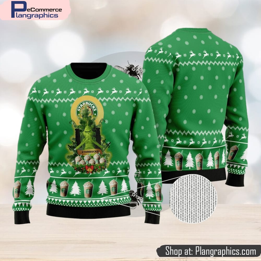 Starbucks Grinch Snow Ugly Christmas Sweater For Men And Women Gift features