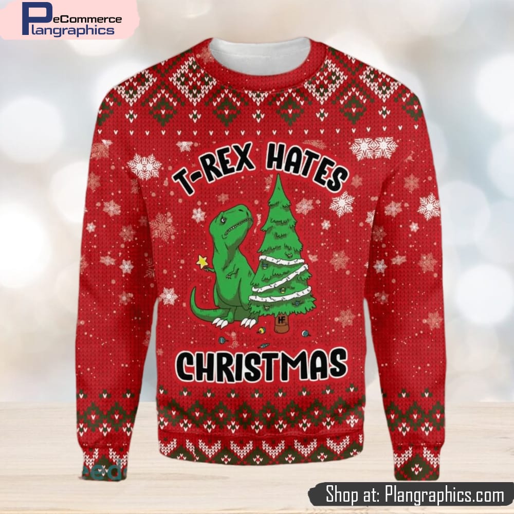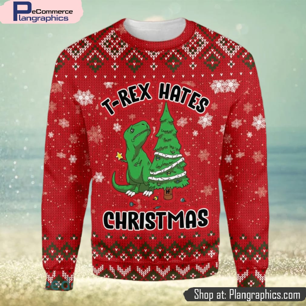 T Rex Hates Ugly Christmas Sweater Xmas Gift 3D Christmas Sweater