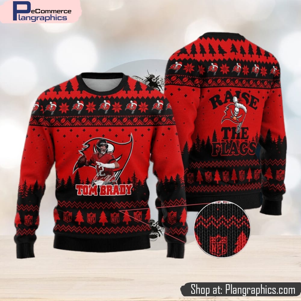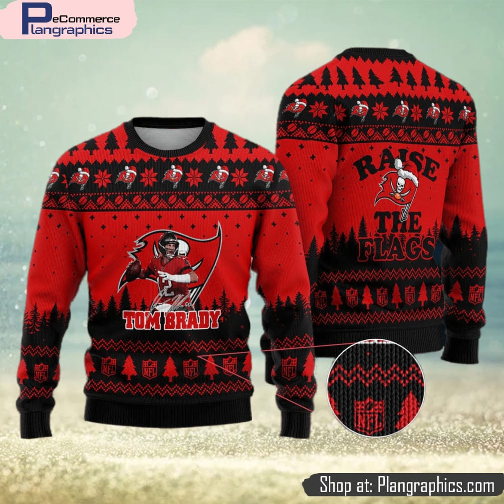 Get into the festive spirit and support the Tampa Bay Buccaneers with the Tom Brady 2 Raise The Flags Ugly Christmas Sweater. This unique sweater captures the essence of Christmas with its eye-catching design. The vibrant colors and intricate patterns make it the perfect addition to any holiday wardrobe. Show off your love for the Buccaneers and Tom Brady while spreading joy and cheer this holiday season. Made with high-quality materials, this sweater is not only fashionable but also comfortable to wear. Whether you’re attending a holiday party or watching the Buccaneers game, this sweater is a must-have for any fan.