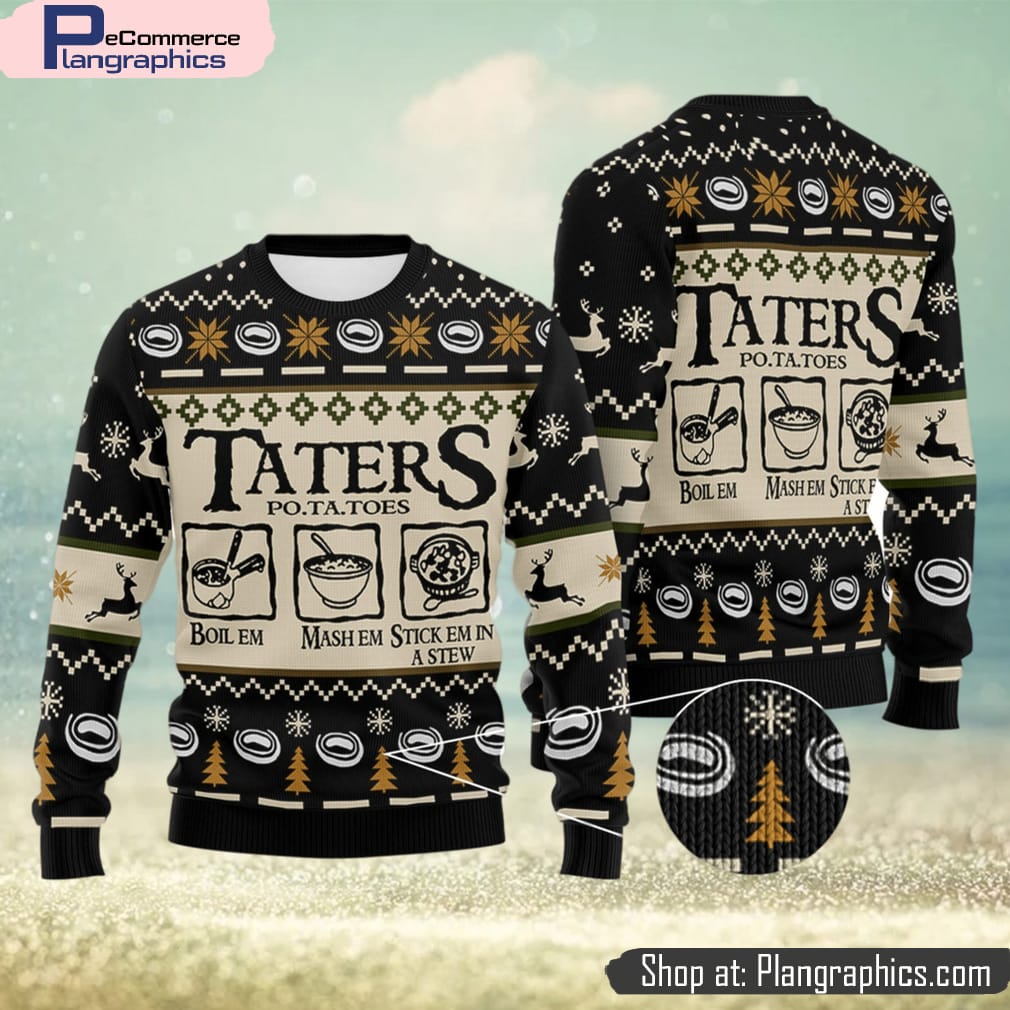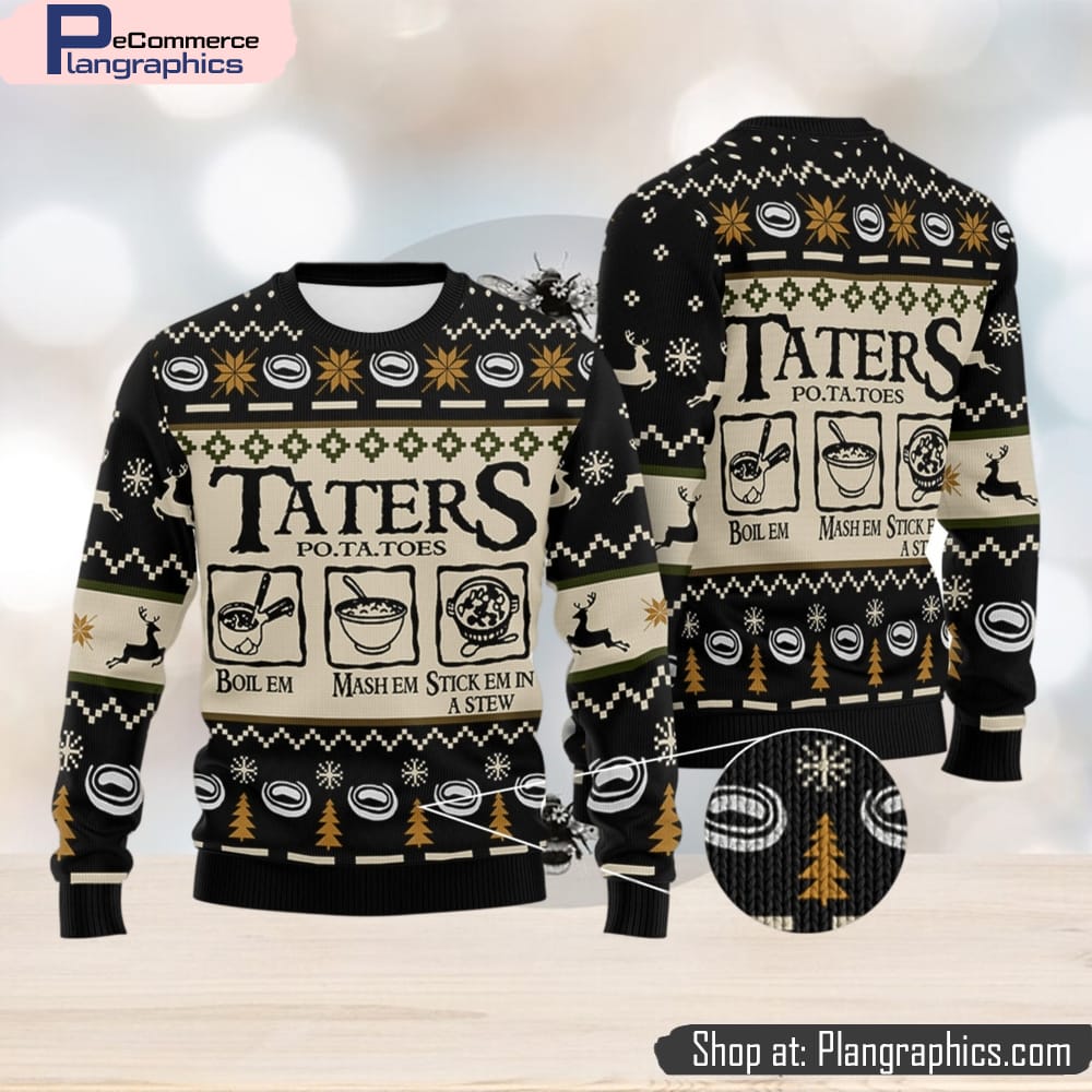 Taters Potatoes LOTR Black Knitted Xmas Gifts Gift Ugly Christmas Sweater For Men And Women