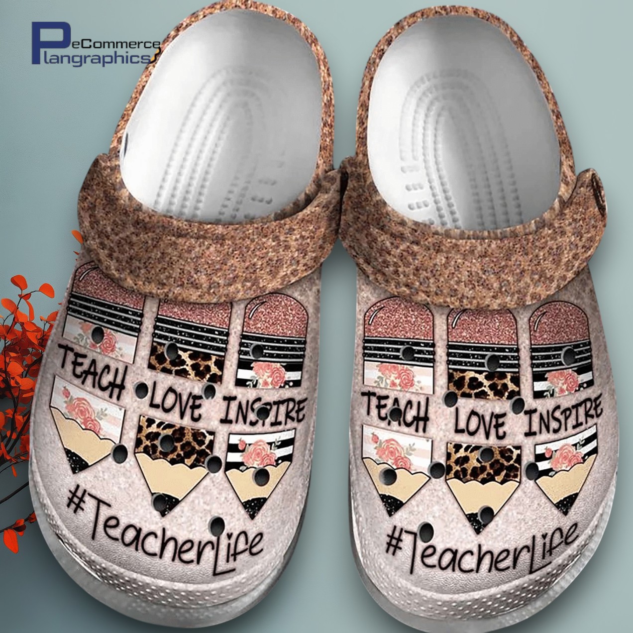 Teacher Life Crayon Print Crocs – Gift for Educators, Unisex details