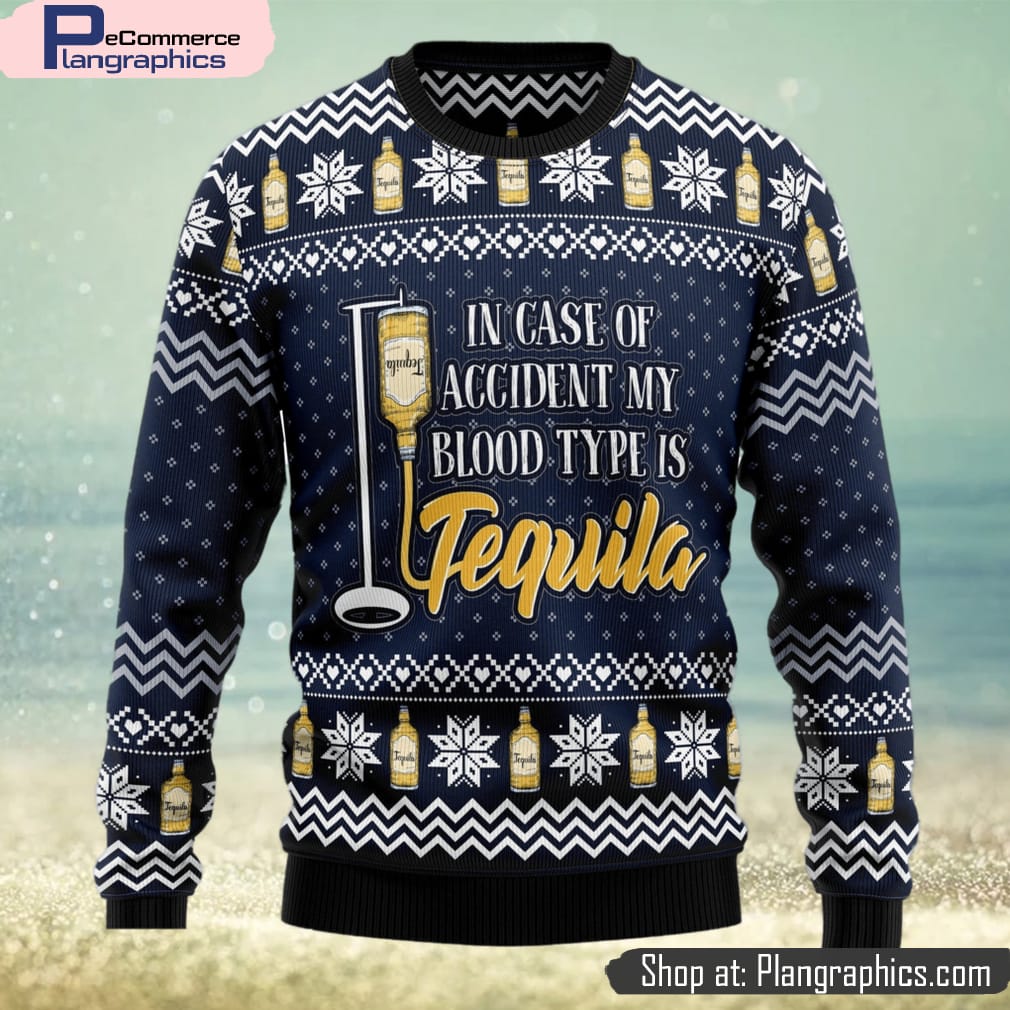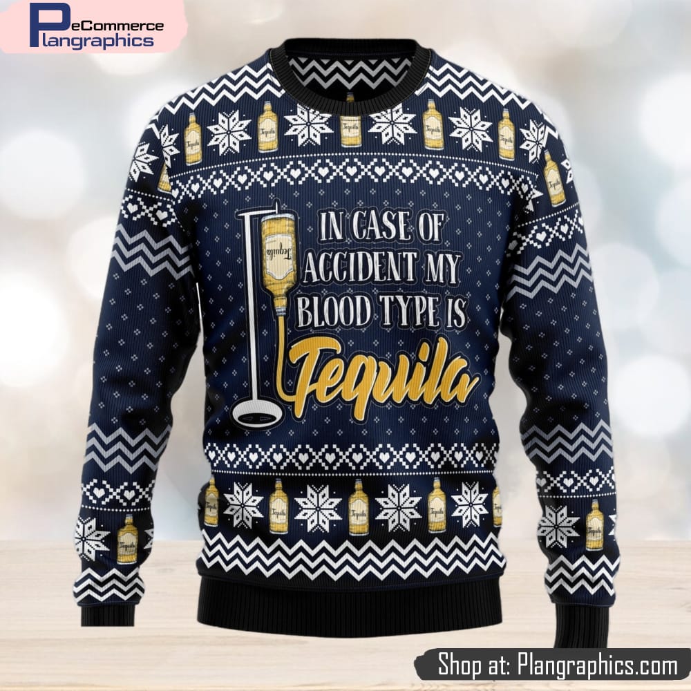 Tequila My Blood Type Ugly Christmas Sweater Thankgiving Gift Men Women