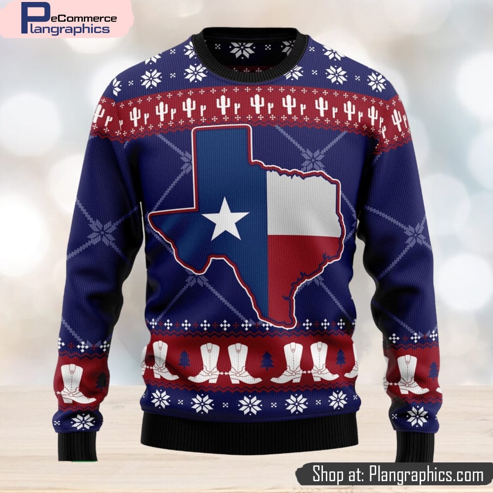 Texas Map Symbols Pattern Ugly Christmas Sweater Thankgiving Gift Men Women