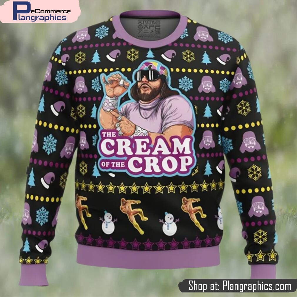 The Cream of the Crop Macho Man Randy Savage Pro Wrestling Ugly Christmas Sweater features