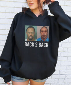 Two stark, mugshot-style portraits occupy the front of this shirt, arranged neatly in a square grid that immediately draws the eye. The faces, rendered in bold black and white, contrast sharply against the shirt’s solid background, creating a graphic punch that’s hard to ignore. Below them, the phrase BACK 2 BACK is stamped in uncompromising, all-caps sans-serif lettering—bold and blocky, it carries the weight of a headline or a chant, turning the shirt into a statement piece with attitude. The design taps directly into the energy of pop culture and meme circles, winkingly celebrating sports fandom with an edge of humor. It’s not just a nod to Tiger Woods or anyone’s sports prowess, but a playfully cheeky way for wearers to show off a shared inside joke or a tongue-in-cheek attitude about perseverance and comeback stories. This shirt appeals to people who appreciate that mix of bold visuals and layered meaning, those who enjoy weaving personality into their everyday clothes without shouting it. Casual yet spirited, the shirt slides right into weekend hangouts, game days, or laid-back gatherings where a bit of humor goes a long way. It fits someone who enjoys a bit of irony and isn’t afraid to wear their fandom on their sleeve—or rather, across their chest. Whether it’s picked up as a lighthearted gift for a sports-loving friend or slipped on to bring a smile to the daily routine, the BACK 2 BACK mug shirt offers a snapshot of identity wrapped in punchy design.