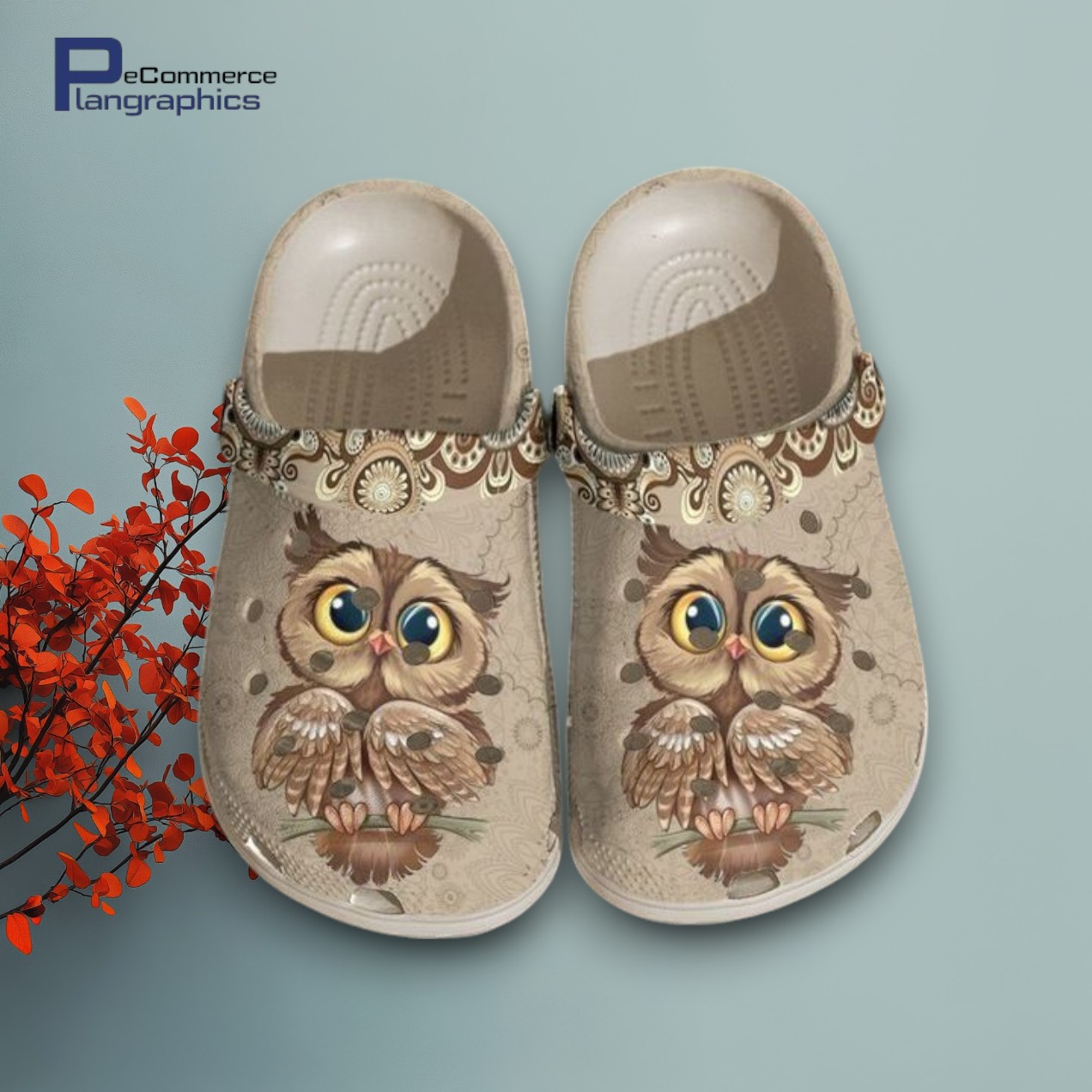 Vintage Owl Print Crocs Clogs – Unique Design Footwear details
