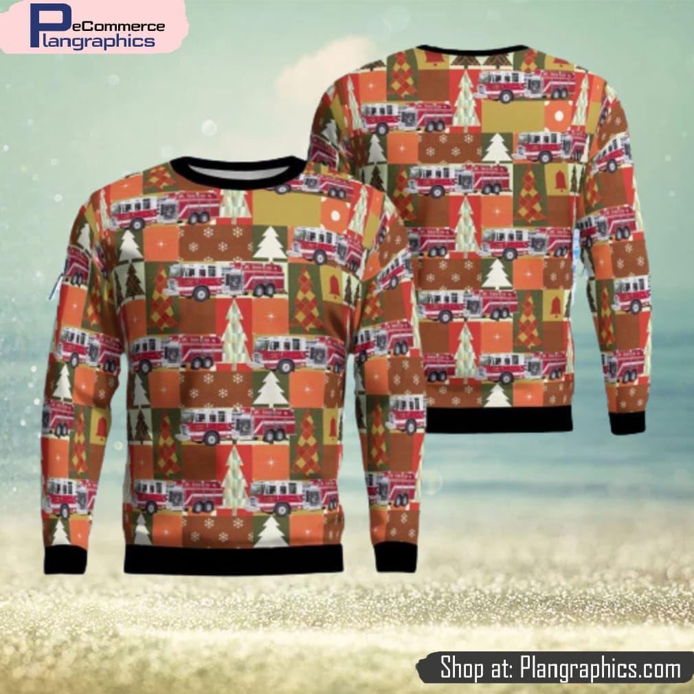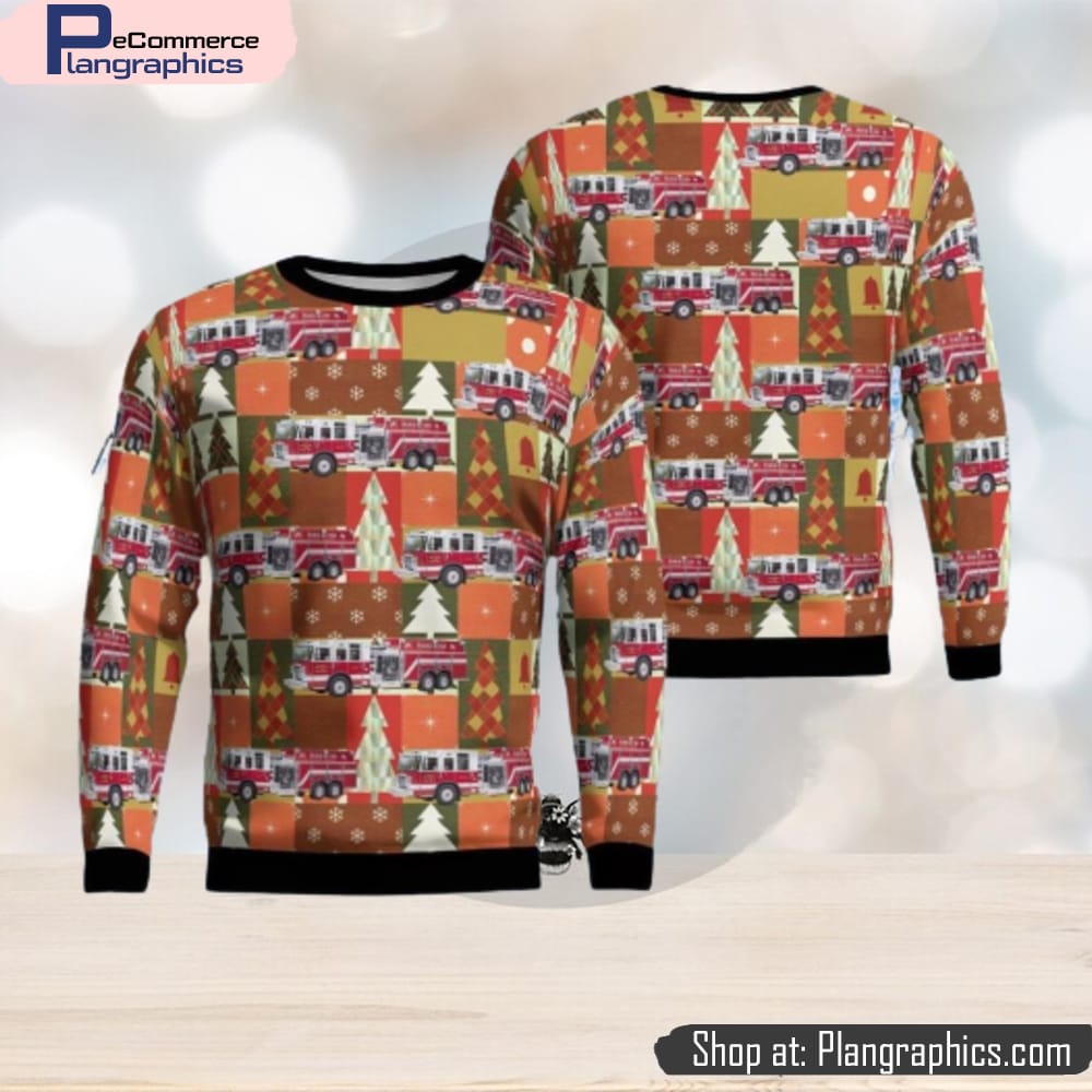Wetmore, Michigan, Munising Township Fire Department Aop Christmas Ugly Sweater 3D features