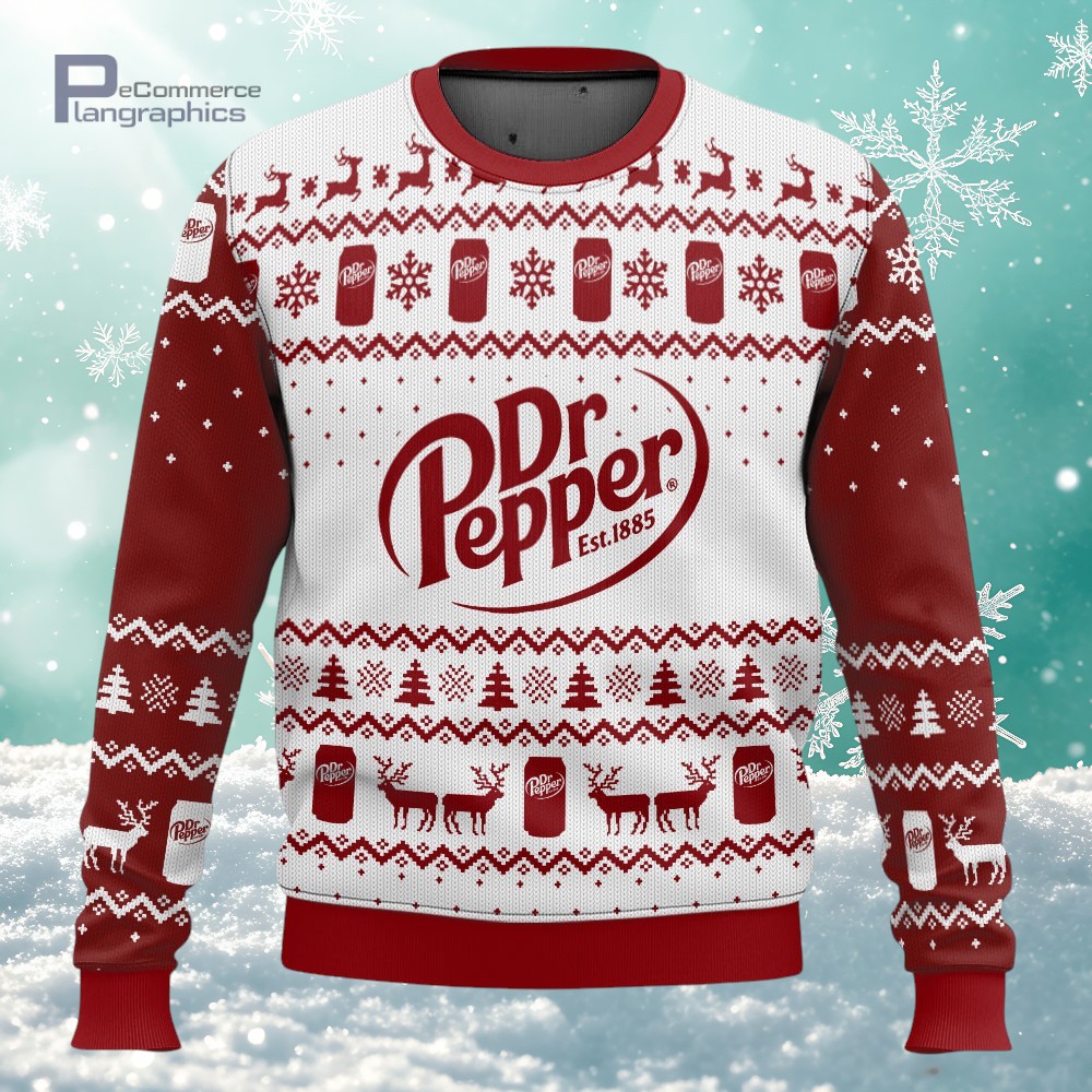 White & Red Dr.Pepper 3D All Over Printed Ugly Christmas Sweater For Fans Worldwide