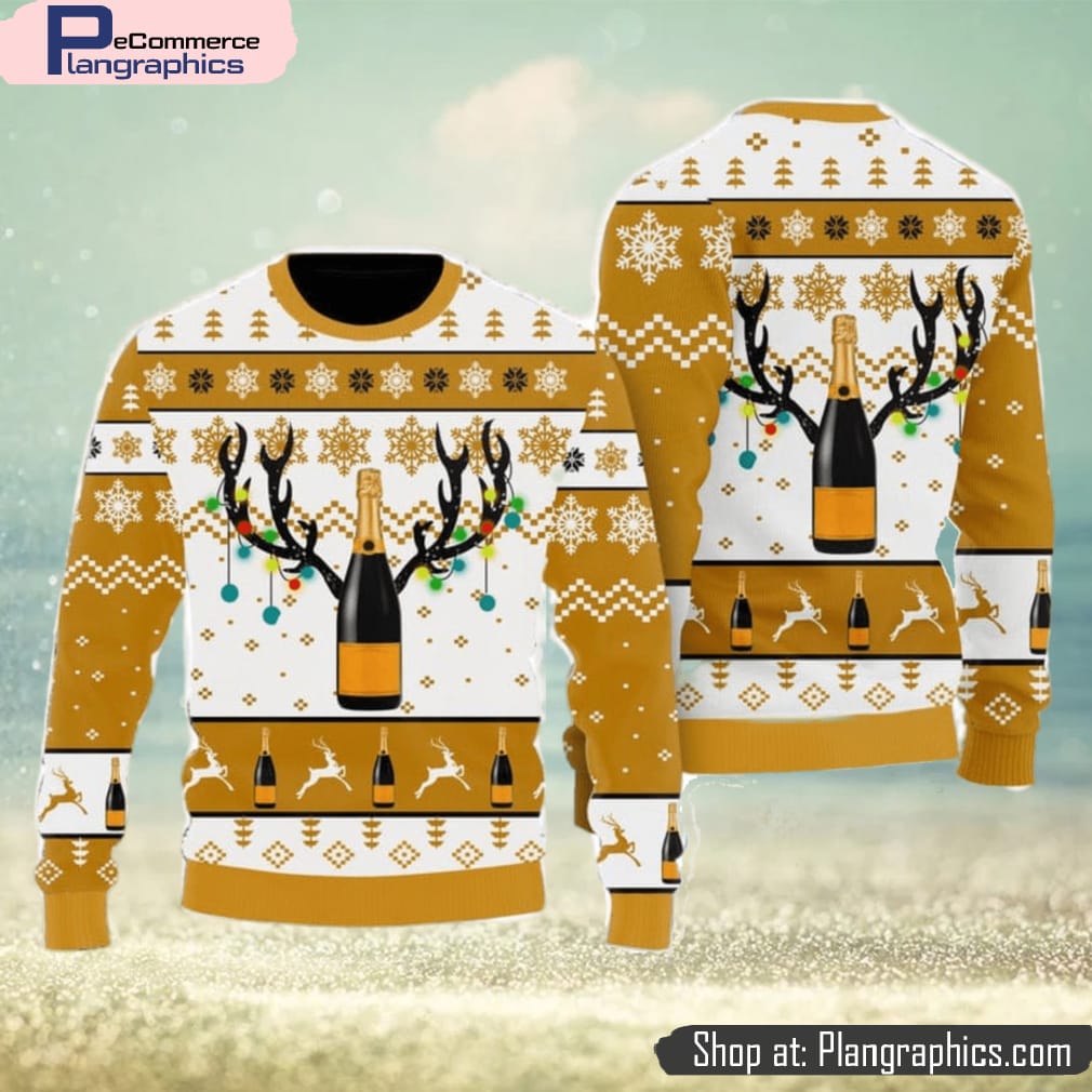 Wine Christmas Spirit Drinking Wine Lovers Gift Yellow Ugly Sweatshirt Sweater features