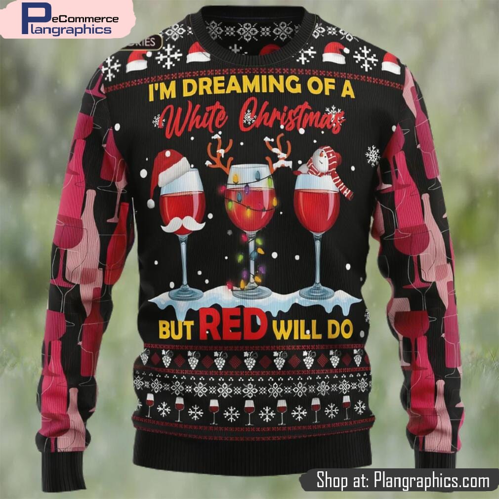 Wine Red Ugly Christmas Sweater, Im Deaming of a White Christmas but RED will do