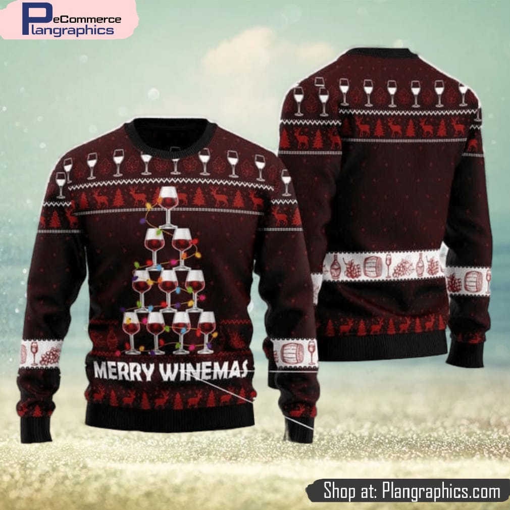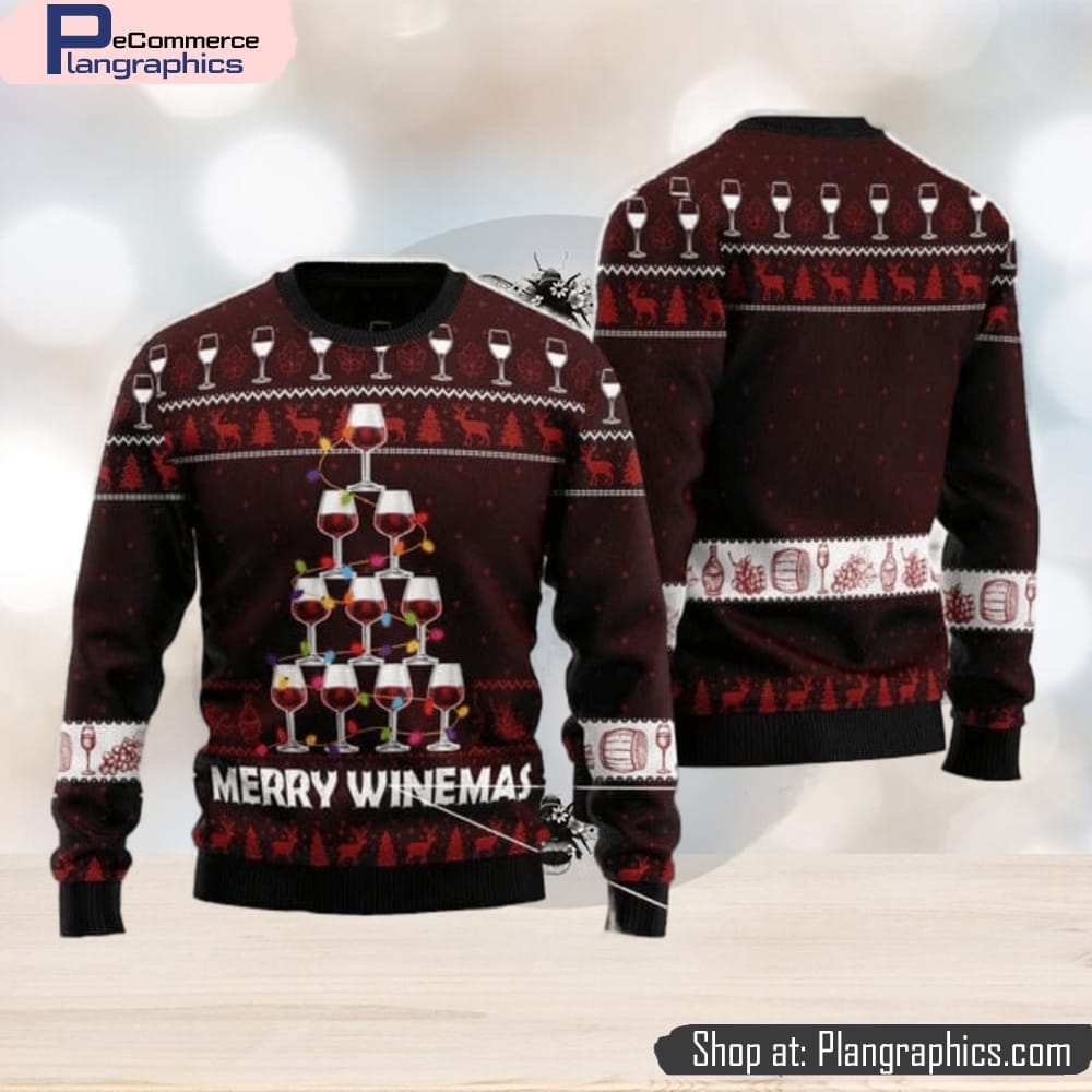 Wine Tree Merry Winemas Men And Women Christmas Gift 3D Ugly Christmas Sweater