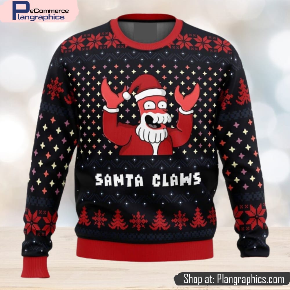 Xmas Ugly sweater Santa Claws Zoidberg Futurama Ugly Christmas 3D Sweater Gift For Men And Women features