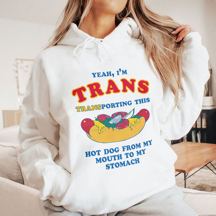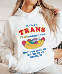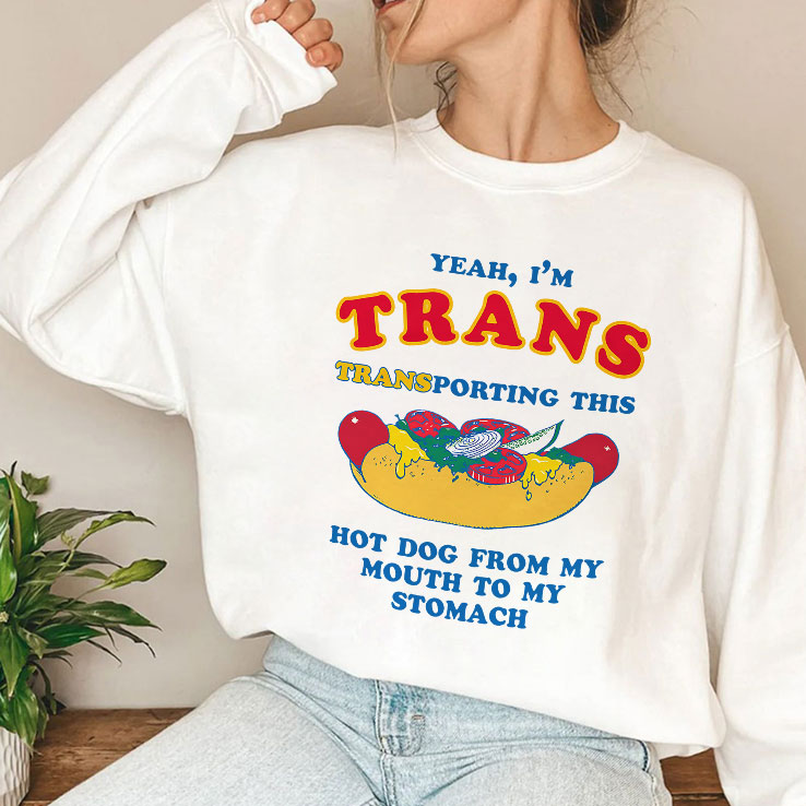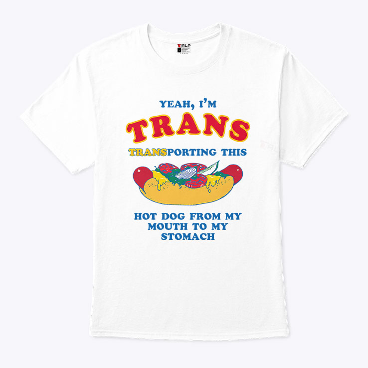 There’s a unique confidence that comes from wearing humor that doubles as a statement, especially when it embraces identity with boldness and wit. This shirt captures that feeling perfectly, merging playful irreverence with a clear nod to trans pride. The graphic centers on a brightly colored hot dog illustration that’s impossible to miss, paired with chunky, retro-inspired block letters swirling with vibrant colors. Together, these elements create a visual punch that’s as cheeky as it is unapologetic. The design plays with the idea of tongue-in-cheek humor in a way that’s both approachable and celebratory. It’s not just about wearing a funny slogan; it’s about owning what that humor says about who you are. The typography feels like a throwback to vintage diner signs, giving the piece a nostalgic edge, but with a modern twist rooted in contemporary queer culture. This is a nod to anyone who appreciates a little irreverence mixed with pride—whether that’s at a laid-back gathering, a lively pride event, or simply as a grounded expression of self. Crafted with attention to both comfort and visual impact, the shirt balances large graphic elements and text with enough breathing room to feel casual rather than crowded. The print pops against a straightforward background, making it clear without overwhelming. Someone who enjoys the clever interplay of meme culture and personal identity will find this shirt a perfect fit for expressing their style and humor. It also makes a thoughtful gift for friends or partners who relish provocative humor and want their clothing to spark conversation. This piece is for those who understand that what you wear can be a form of playful storytelling—an emblem of community and individuality rolled into one.