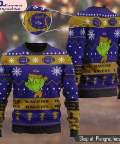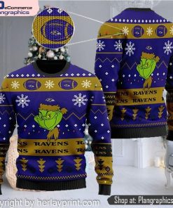 Baltimore Ravens American NFL Football Team Logo Cute Grinch 3D Men And Women Ugly Sweater